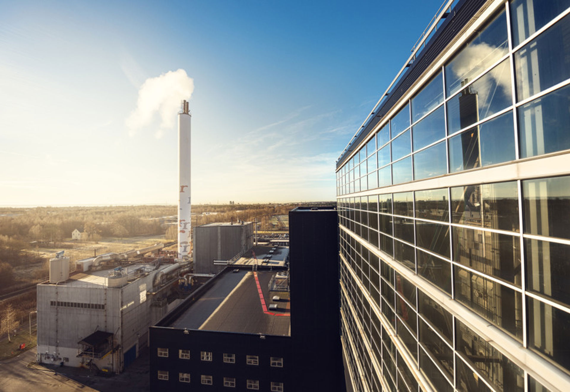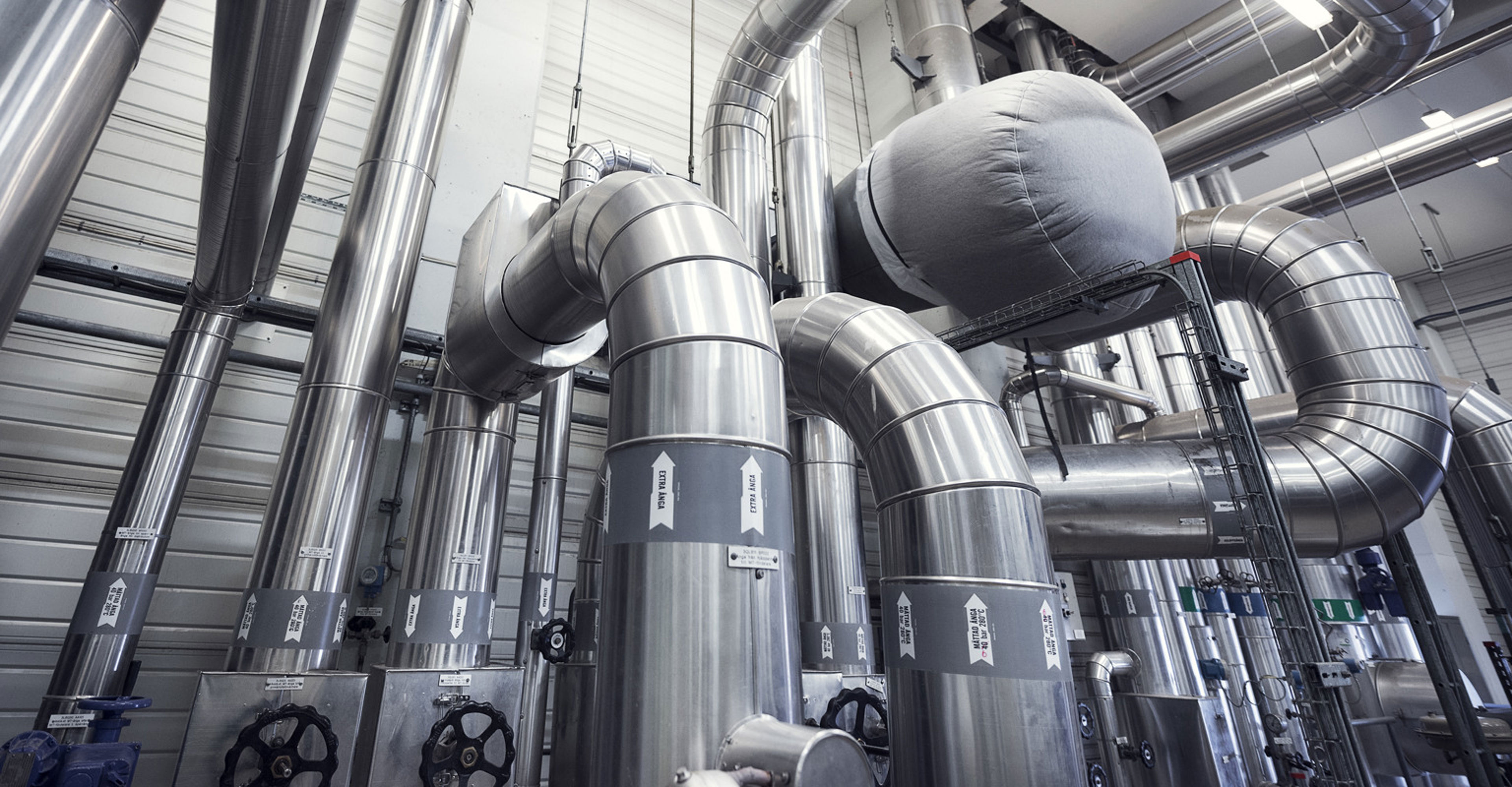 Ytterligare saltsyra avskiljs i en andra skrubber. I det tredje skrubbersteget avlägsnas svaveldioxid. Här hålls ph-värdet omkring 5,5 genom att kalksten tillsätts. Svaveldioxiden reagerar i skrubbern med kalken och bildar gips, som efter utmatning körs till deponi. Sedan följer en kondenseringsskrubber. Värme utvinns då ur rökgaserna via rökgaskondensering där vi tar tillvara förångningsenergin i gasens fuktinnehåll. Med värmeväxlare överförs värme från kondenseringssteget till fjärrvärmenätet, dels direkt och dels genom en absorptionsvärmepump. Totalt nyttiggörs 8-9 MW värme genom rökgaskondenseringen. Värmepumpen drivs med hetvatten från P1 och P2.